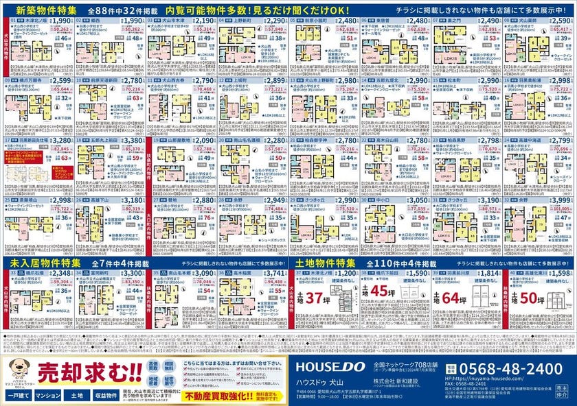 今月のチラシは新着新築物件祭りです♪新着物件多数掲載しております。