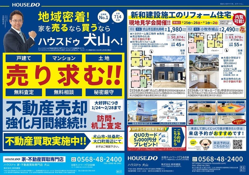 朝起きるのがつらい季節ですが、皆様いかがお過ごしでしょうか? 1月24日の折込チラシのご案内です♪ 今月のチラシは新和建設施工のリフォーム住宅特集です! 1月25日・...